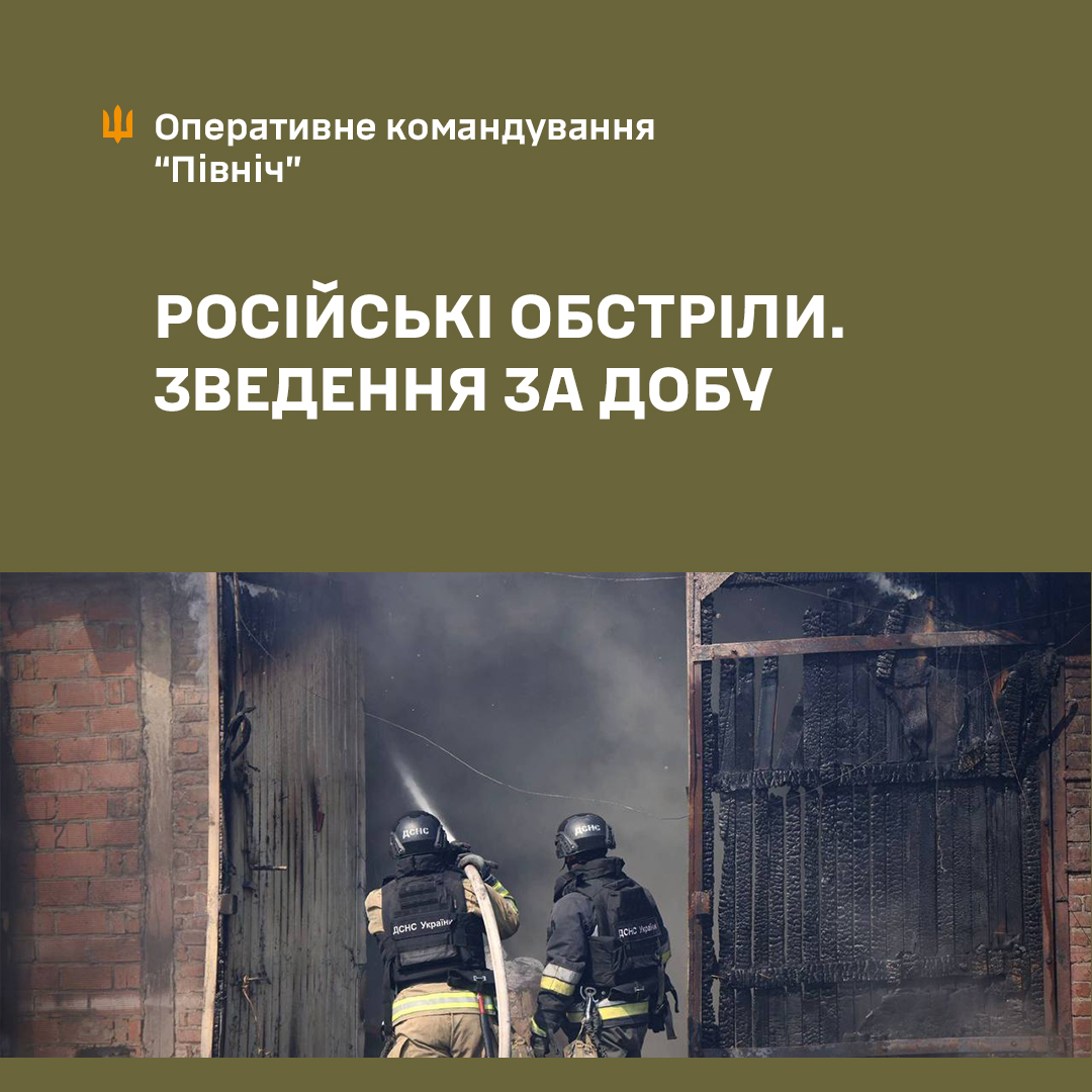 Сумщина: російські війська здійснили майже 80 обстрілів по 22 населених пунктах в 12 територіальних громадах.