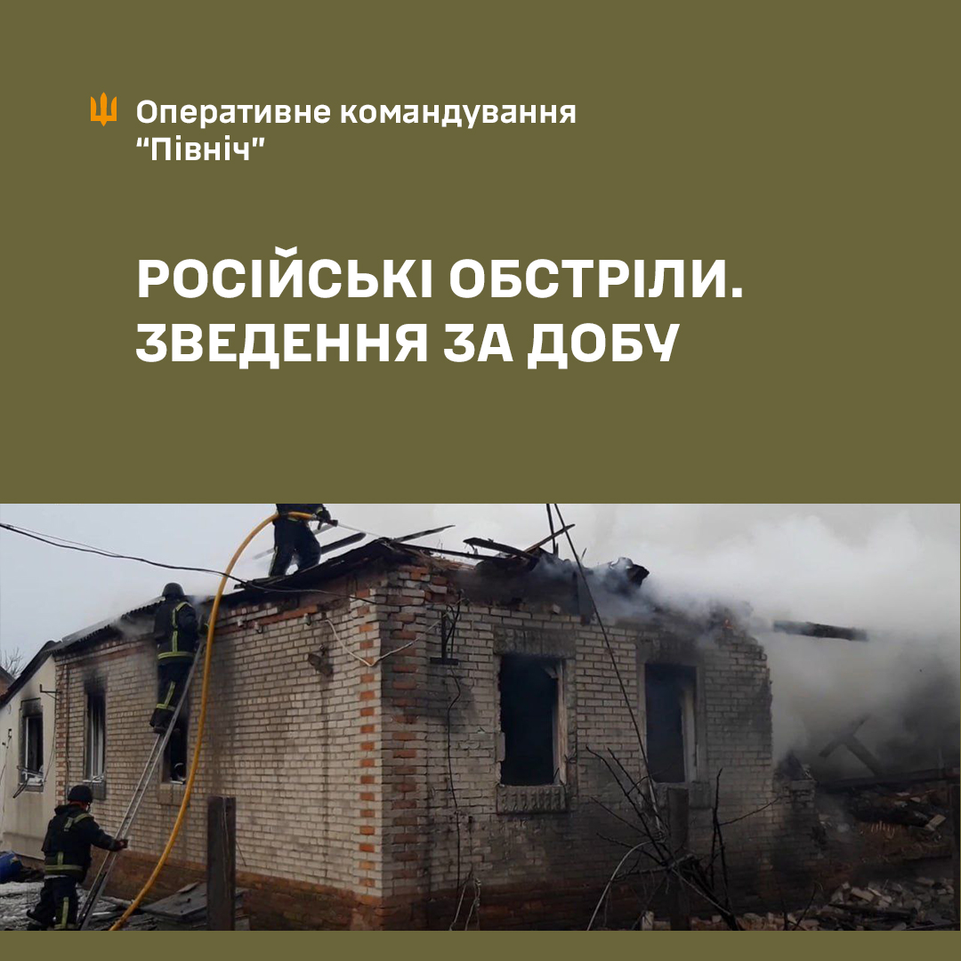 Терористична армія рф продовжує обстрілювати територіально підпорядковані ОК “Північ” області. Порушуючи правила ведення війни, рф цинічно та підступно тероризує мирне населення, знищує цивільну та критичну інфраструктуру. За минулу добу і станом на ранок 16.02.2026 року зафіксовано: