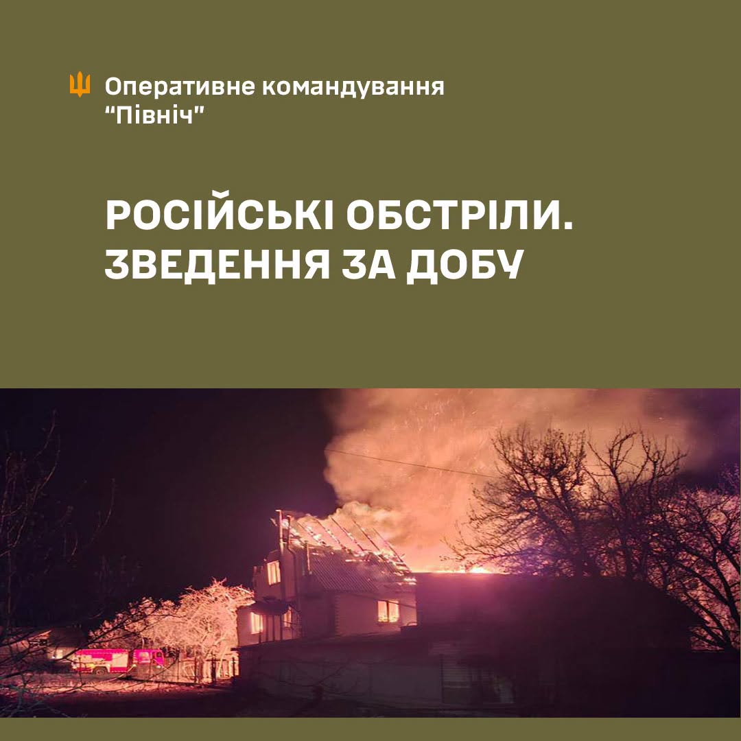 Терористична армія рф продовжує обстрілювати територіально підпорядковані ОК “Північ” області. Порушуючи правила ведення війни, рф цинічно та підступно тероризує мирне населення, знищує цивільну та критичну інфраструктуру. За минулу добу і станом на ранок 19.04.2026 року зафіксовано: