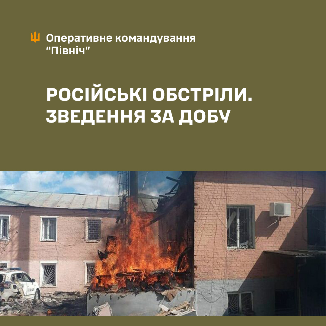 Терористична армія рф продовжує обстрілювати територіально підпорядковані ОК “Північ” області. Порушуючи правила ведення війни, рф цинічно та підступно тероризує мирне населення, знищує цивільну та критичну інфраструктуру. За минулу добу і станом на ранок 21.04.2026 року зафіксовано: