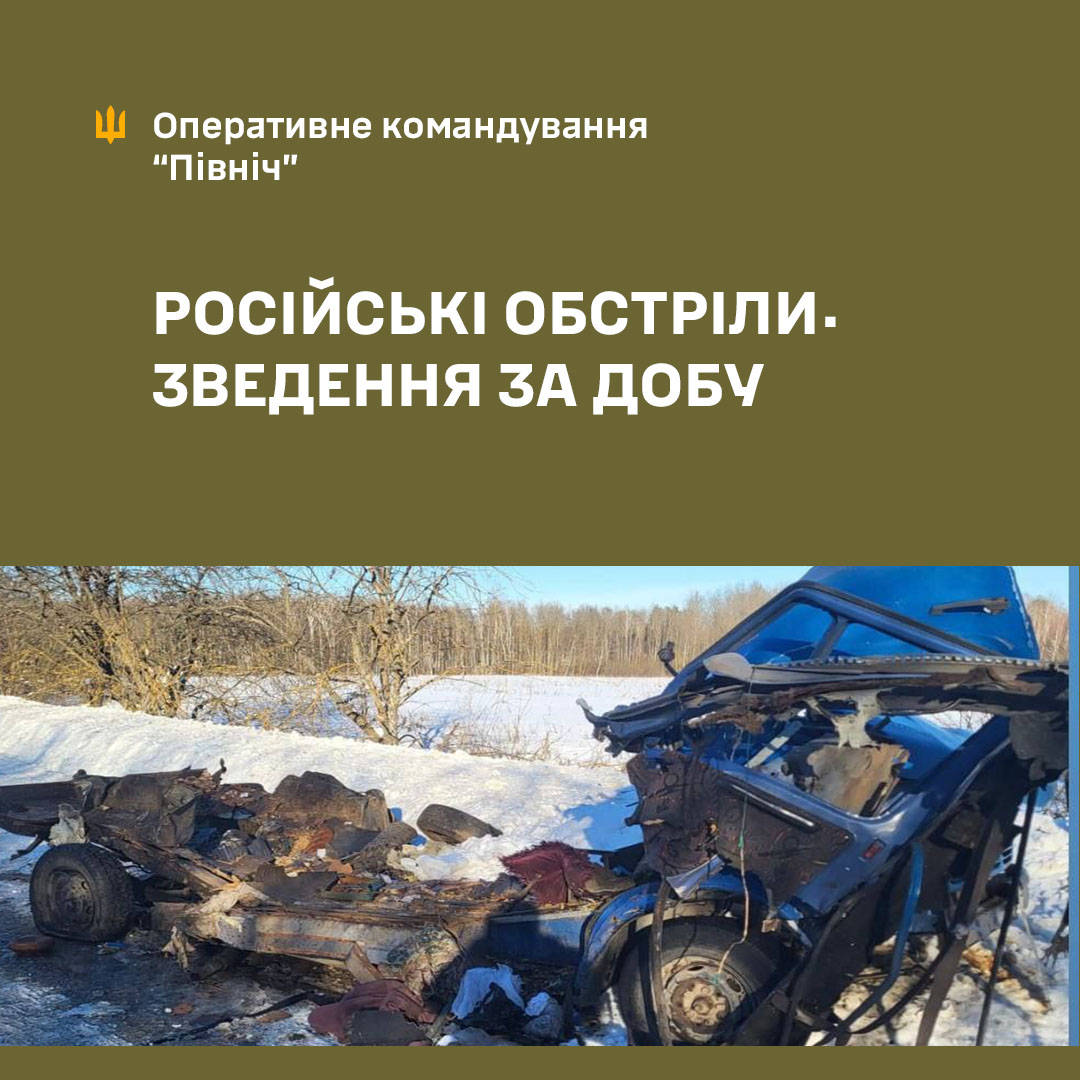 Терористична армія рф продовжує обстрілювати територіально підпорядковані ОК “Північ” області. Порушуючи правила ведення війни, рф цинічно та підступно тероризує мирне населення, знищує цивільну та критичну інфраструктуру. За минулу добу і станом на ранок 22.02.2026 року зафіксовано: