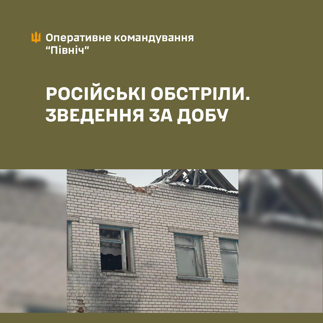 Армія рф продовжує обстрілювати територіально підпорядковані ОК “Північ” області. Порушуючи правила ведення війни, рф цинічно та підступно тероризує мирне населення, знищує цивільну та критичну інфраструктуру. За минулу добу і станом на ранок 23.01.2026 року зафіксовано: