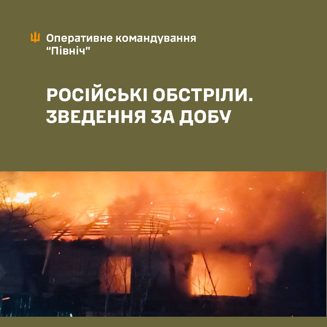 Терористична армія рф продовжує обстрілювати територіально підпорядковані ОК “Північ” області. Порушуючи правила ведення війни, рф цинічно та підступно тероризує мирне населення, знищує цивільну та критичну інфраструктуру. За минулу добу і станом на ранок 26.02.2026 року зафіксовано: