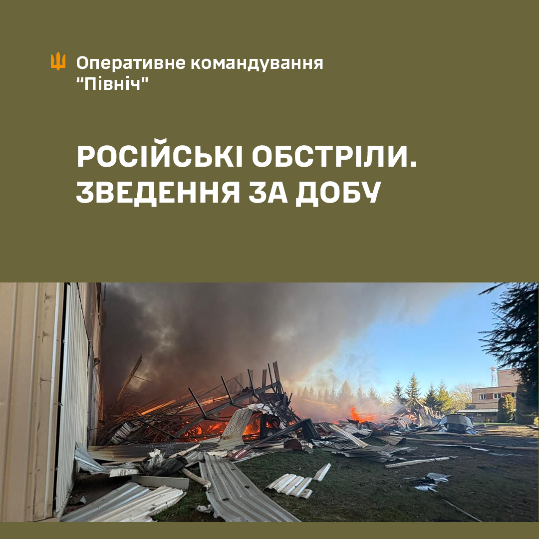 Терористична армія рф продовжує обстрілювати територіально підпорядковані ОК “Північ” області. Порушуючи правила ведення війни, рф цинічно та підступно тероризує мирне населення, знищує цивільну та критичну інфраструктуру. За минулу добу і станом на ранок 27.04.2026 року зафіксовано: