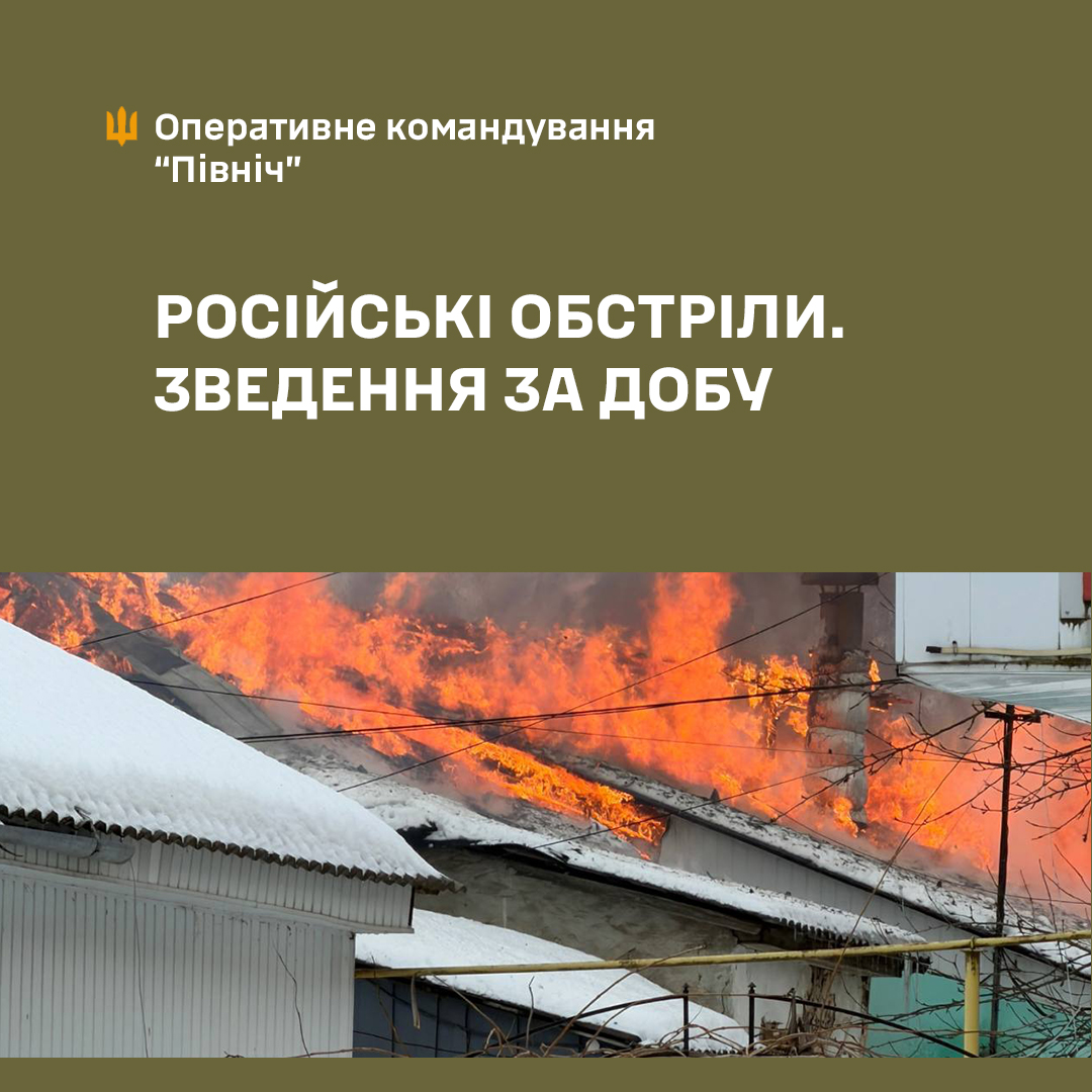 Терористична армія рф продовжує обстрілювати територіально підпорядковані ОК “Північ” області. Порушуючи правила ведення війни, рф цинічно та підступно тероризує мирне населення, знищує цивільну та критичну інфраструктуру. За минулу добу і станом на ранок 28.01.2026 року зафіксовано: