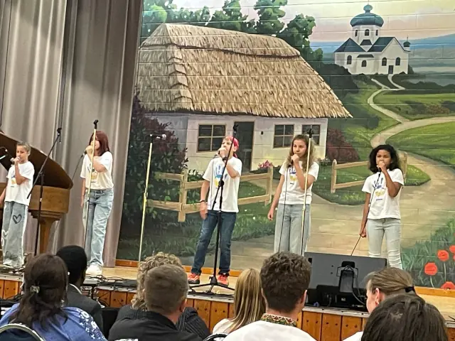 Ведуча Анна Дмитришин представила наступну точку такими словами: «Найцінніший скарб України — це наші діти, які несуть у серцях любов до Батьківщини. Зустрічайте маленьких талантів із літнього табору Рідної Школи. Керівниця табору — директорка Оля Миць, музичний супровід дириґентки Анни Крупи». Діти виконали пісню «Ми всі — одна родина» із заразливим ентузіязмом та енерґією.