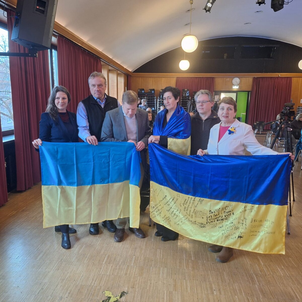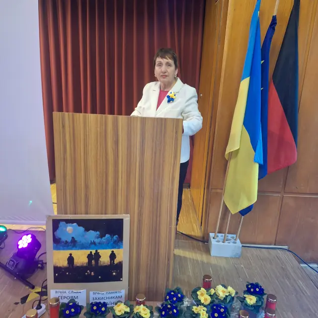 Чорні птахи смерті розносяться Україною, на кладовищах, над могилами захисників все більше і більше з’являється прапорів. Важко собі уявити, що тепер ніколи батьки не зможуть обійняти свого сина, доньку чи брата, а діти – батька. Ця гірка історія пишеться щодня. Аґнес Крістнер, бургомістр з питань культури заявила, що напад росії – це атака на європейські цінності, і не можна заплющувати очі на кричуще порушення міжнародного права. Подякувала за захист Європи.