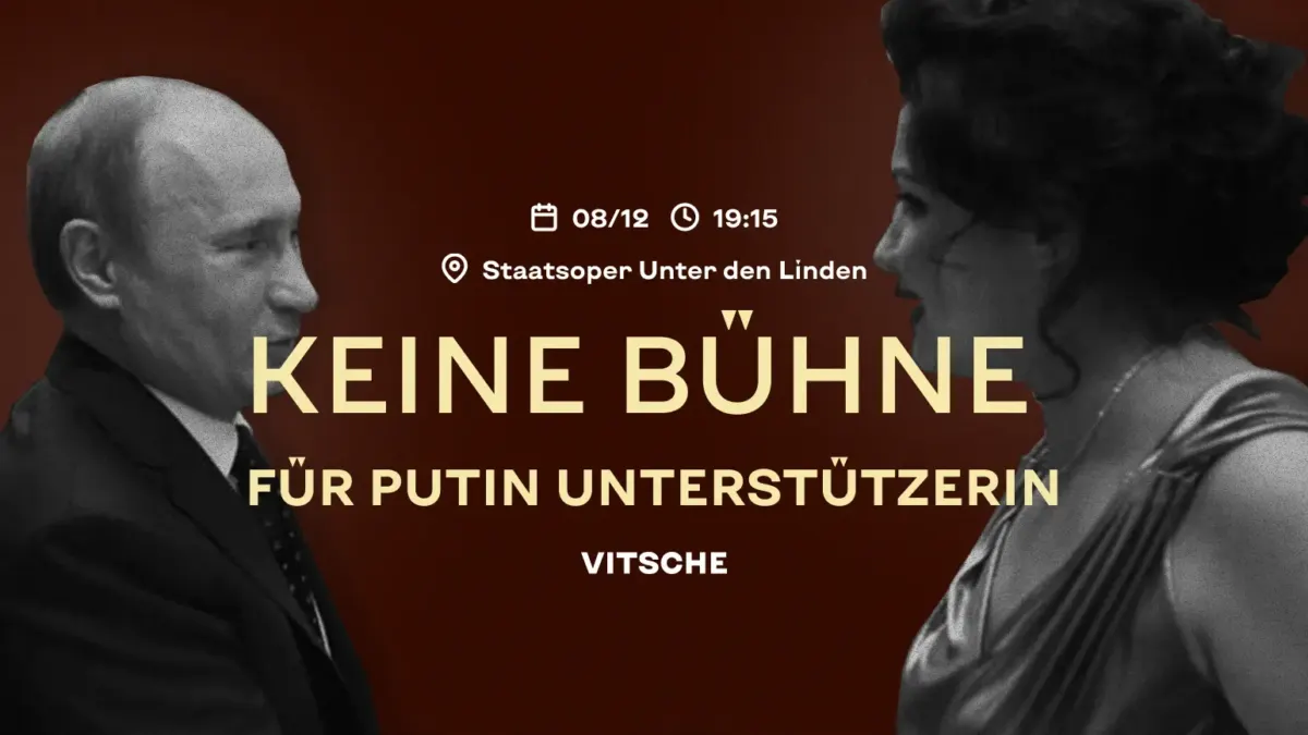 Ми знову збираємося перед Державною оперою Берліна, щоб висловити протест проти її подальшої співпраці з Анною Нетребко — мисткинею, чия багаторічна й задокументована близькість до путінського політичного кола вже давно викликає серйозне суспільне занепокоєння.