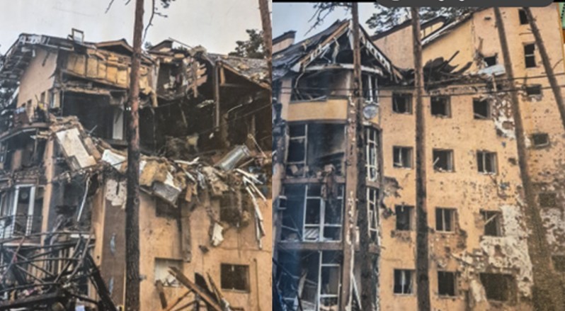 Про великі страждання дізнаємося з конкретних прикладів, таких як порятунок людей, яких врятували після того, як цивільні будинки були уражені ракетами. Ці люди отримають лікування їхньої травми і перебувають в розселенні, наприклад – вісім осіб ділять невелику кімнату. Багато хто повертається з тісного житла до своїх зруйнованих домівок, де знаходять притулок у зруйнованих підвалах. Це можна пояснити тим, що після розпаду Совєтського Союзу люди в Україні мали змогу приватизувати свої квартири, отримавши таким чином право власності та безпеку свого житла.