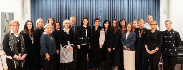 Захід 9 березня в Українському Інституті Америки. На фото представниці української делегації, уряду України, ПП України при ООН, GIWPS та команда СФУЖО. Зліва: Айла Баккаллі, Христина Гайовишин, Мар’яна Беца, Оксана Коник, Катерина Левченко, посол Мелані Вервір, Зоряна Головата, Софійка Зєлик, Марія Чухнова, Маріянна Заяць, Наталія Добровольська