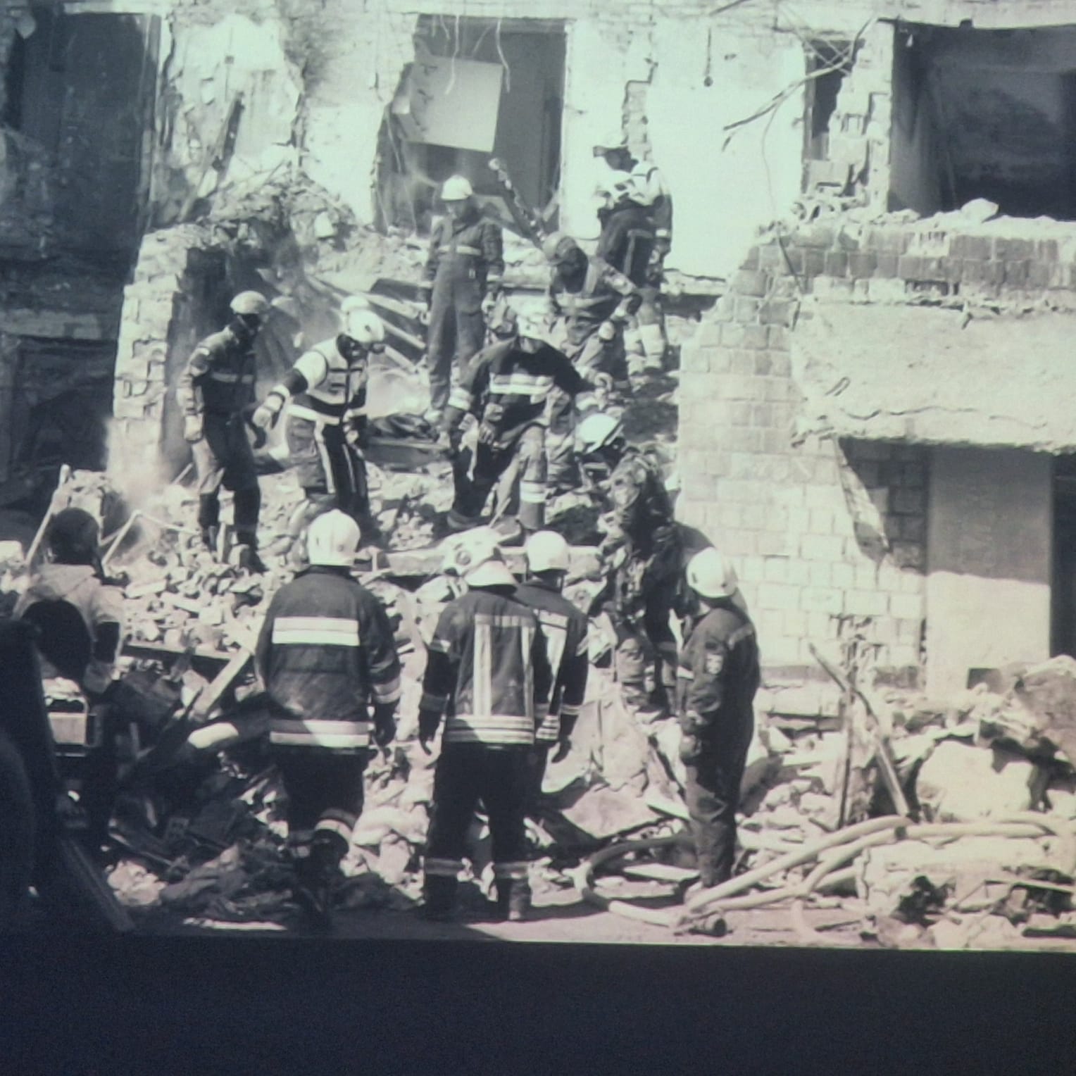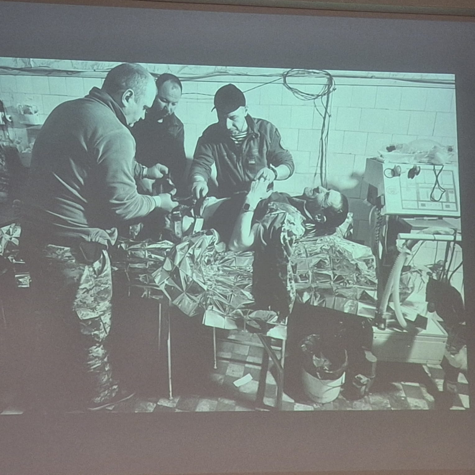 Увагу присутніх було прикуто до екрану, на якому одна за одною демонструвалися роботи великого майстра, в ній задокументовано короткі суворі реалії життя, миті війни, злочини кремлівського вбивці: солдати в окопах, зруйновані житлові будинки, шкільні класи, хірургічні операції військових у надзвичайно тяжких умовах. На кожній світлині показано спротив українців, які чинять шалений опір росії. Ось кілька промовистих назв: «Могила у вирві», «Смерть з повітря», «Злість Путіна і стійкість Єлени», «Місто-привид», «Чотирилапі друзі». «Черкаський мисливець за дронами», «Втеча в невідомість».